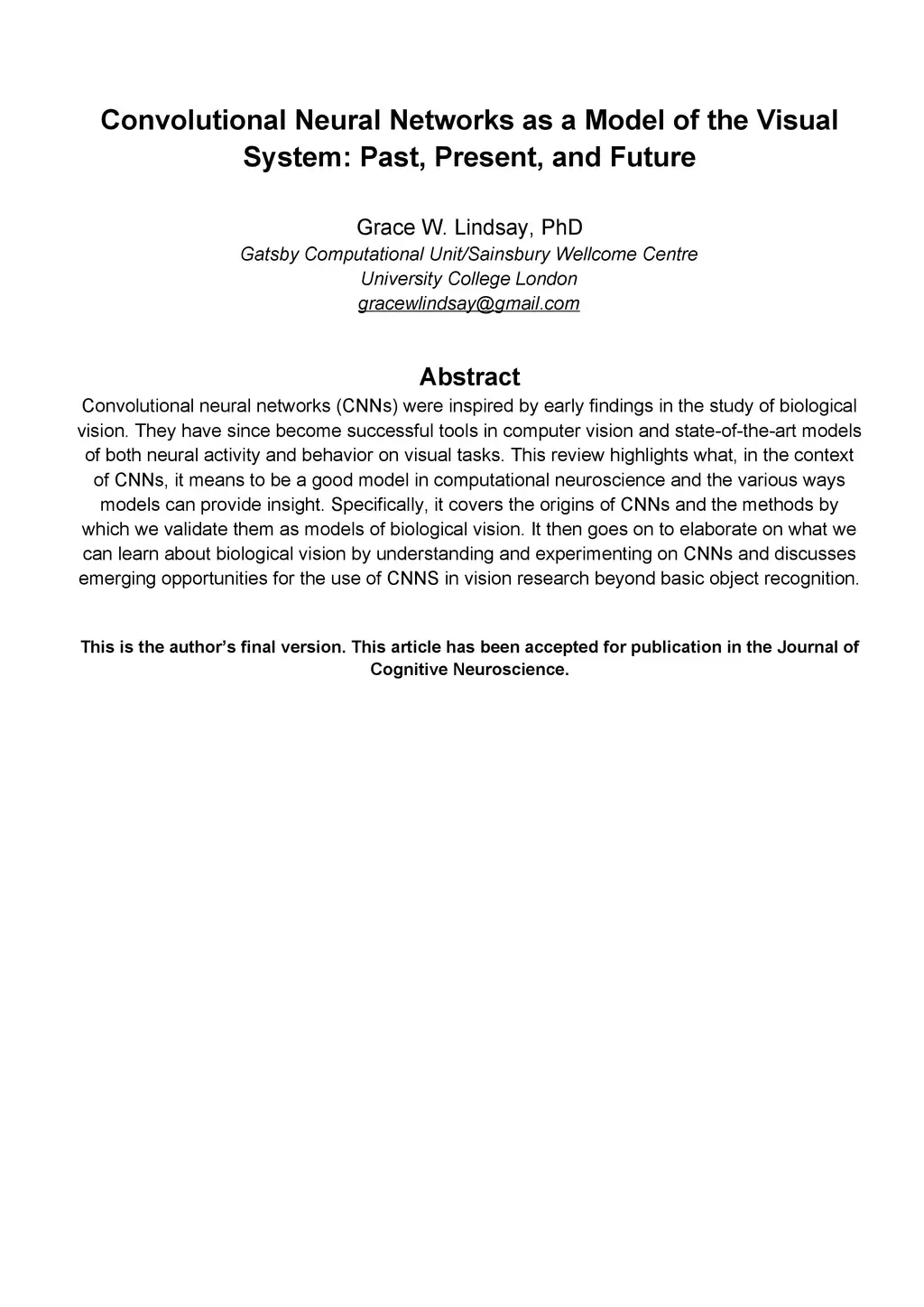 Journal of Cognitive Neuroscience (J Cogn Neurosci), 2020