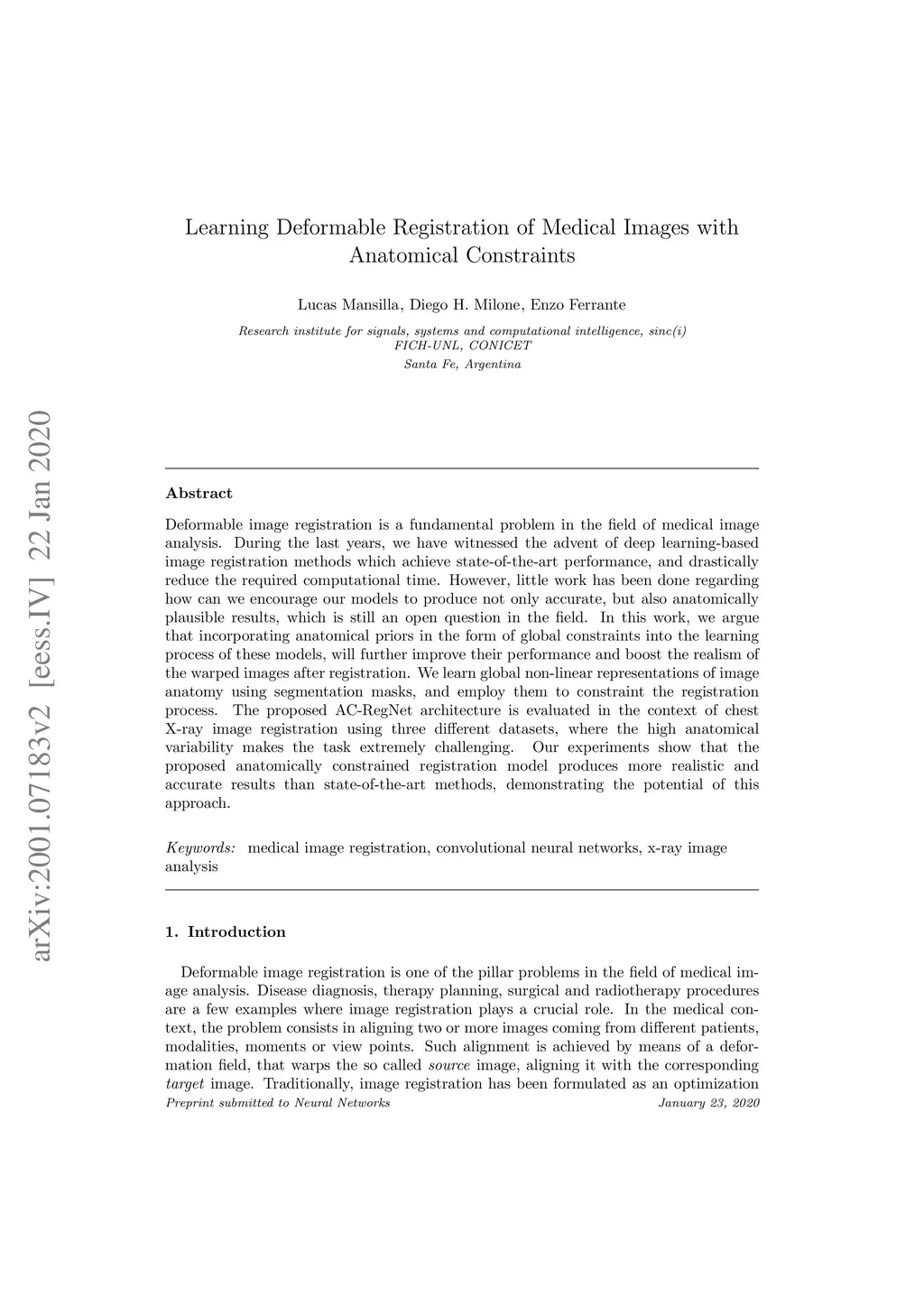 Deformable image registration is a fundamental problem in the field of medical image analysis. During the last years, we have witnessed the advent of deep learning-based image registration methods which achieve state-of-the-art performance, and drastically reduce the required computational time. However, little work has been done regarding how can we encourage our models to produce not only accurate, but also anatomically plausible results, which is still an open question in the field. In this work, we argue that incorporating anatomical priors in the form of global constraints into the learning process of these models, will further improve their performance and boost the realism of the warped images after registration. We learn global non-linear representations of image anatomy using segmentation masks, and employ them to constraint the registration process. The proposed AC-RegNet architecture is evaluated in the context of chest X-ray image registration using three different datasets, where the high anatomical variability makes the task extremely challenging. Our experiments show that the proposed anatomically constrained registration model produces more realistic and accurate results than state-of-the-art methods, demonstrating the potential of this approach.