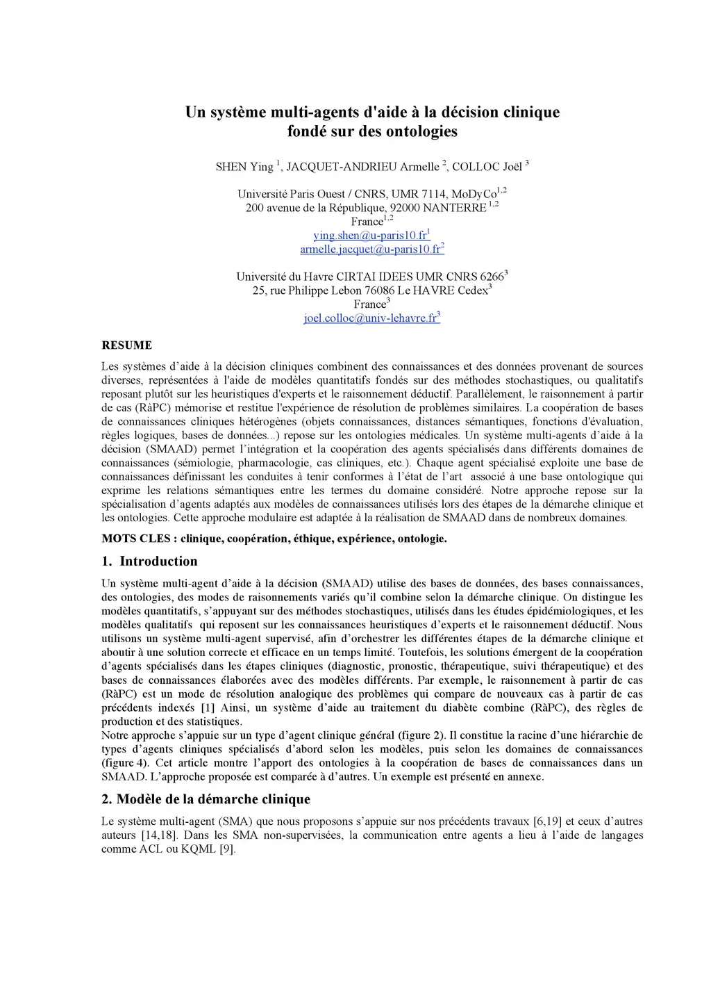 Clinical decision support systems combine knowledge and data from a variety of sources, represented by quantitative models based on stochastic methods, or qualitative based rather on expert heuristics and deductive reasoning. At the same time, case-based reasoning (CBR) memorizes and returns the experience of solving similar problems. The cooperation of heterogeneous clinical knowledge bases (knowledge objects, semantic distances, evaluation functions, logical rules, databases...) is based on medical ontologies. A multi-agent decision support system (MADSS) enables the integration and cooperation of agents specialized in different fields of knowledge (semiology, pharmacology, clinical cases, etc.). Each specialist agent operates a knowledge base defining the conduct to be maintained in conformity with the state of the art associated with an ontological basis that expresses the semantic relationships between the terms of the domain in question. Our approach is based on the specialization of agents adapted to the knowledge models used during the clinical steps and ontologies. This modular approach is suitable for the realization of MADSS in many areas.