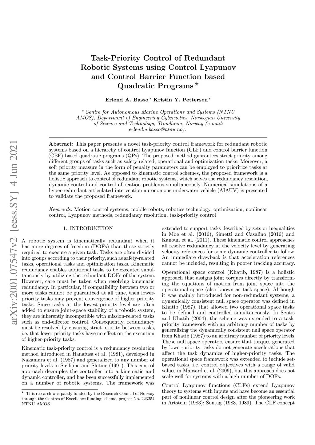 Task-Priority Control of Redundant Robotic Systems using Control