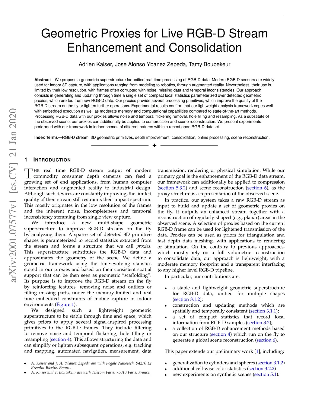 Geometric Proxies for Live RGB-D Stream Enhancement and Consolidation