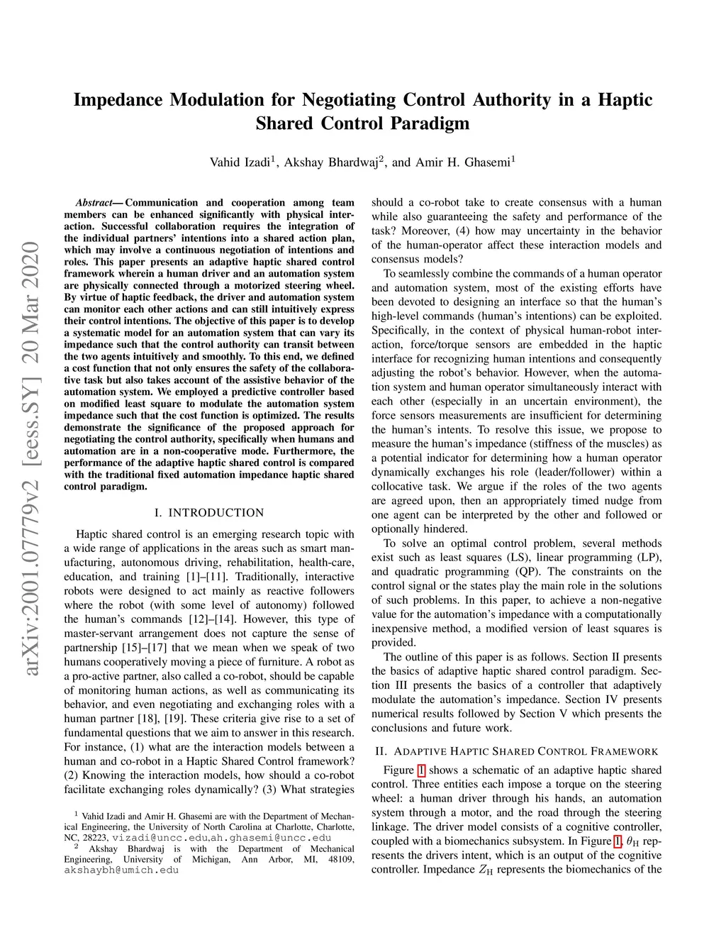 Impedance Modulation for Negotiating Control Authority in a Haptic