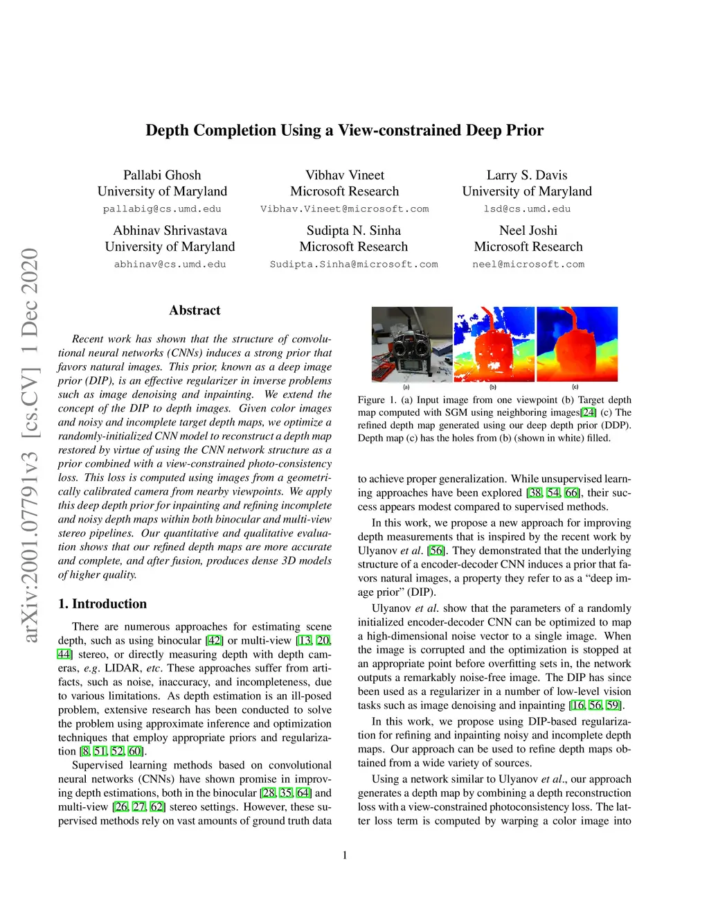Depth Completion Using a View-constrained Deep Prior