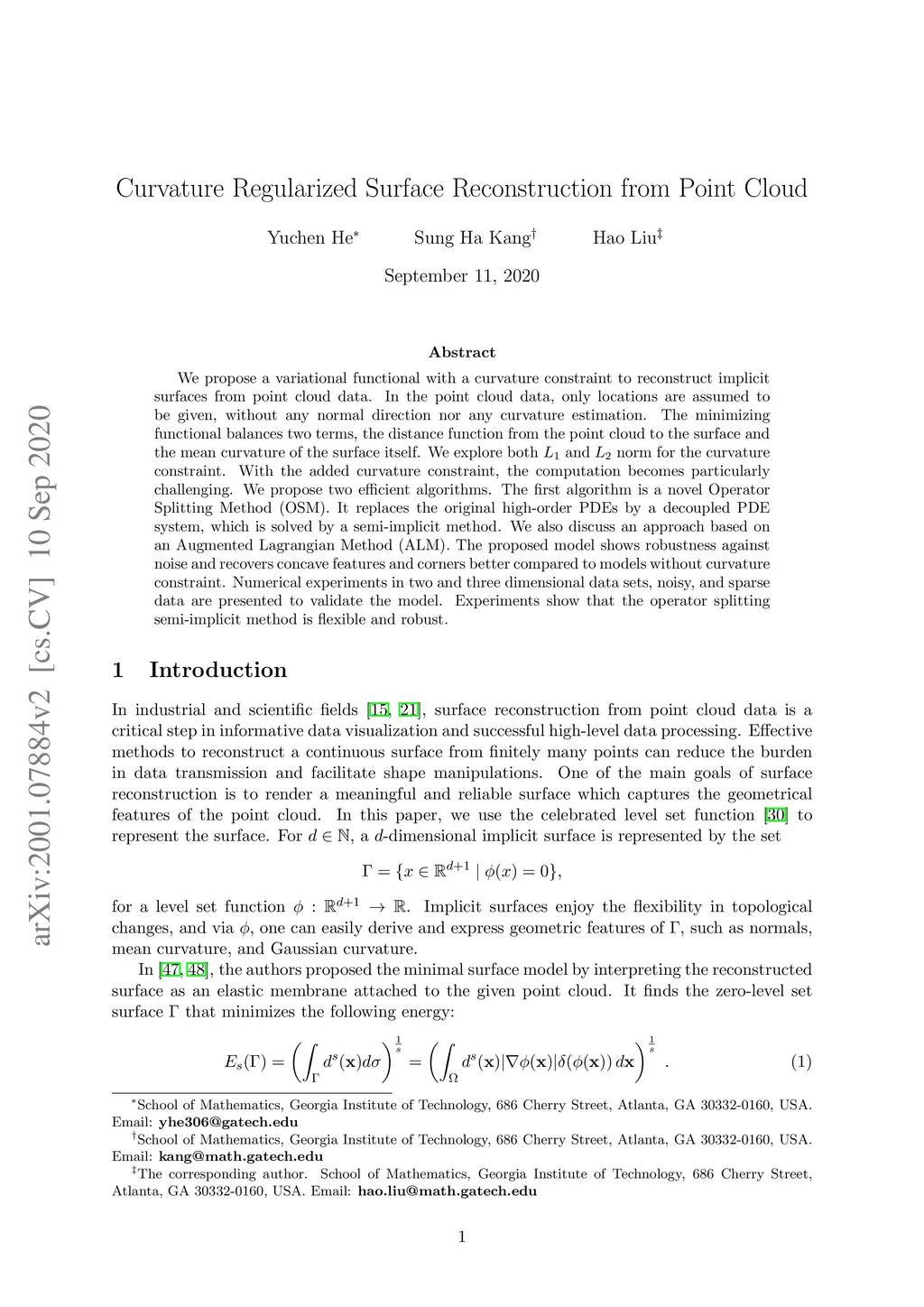 Curvature Regularized Surface Reconstruction from Point Cloud