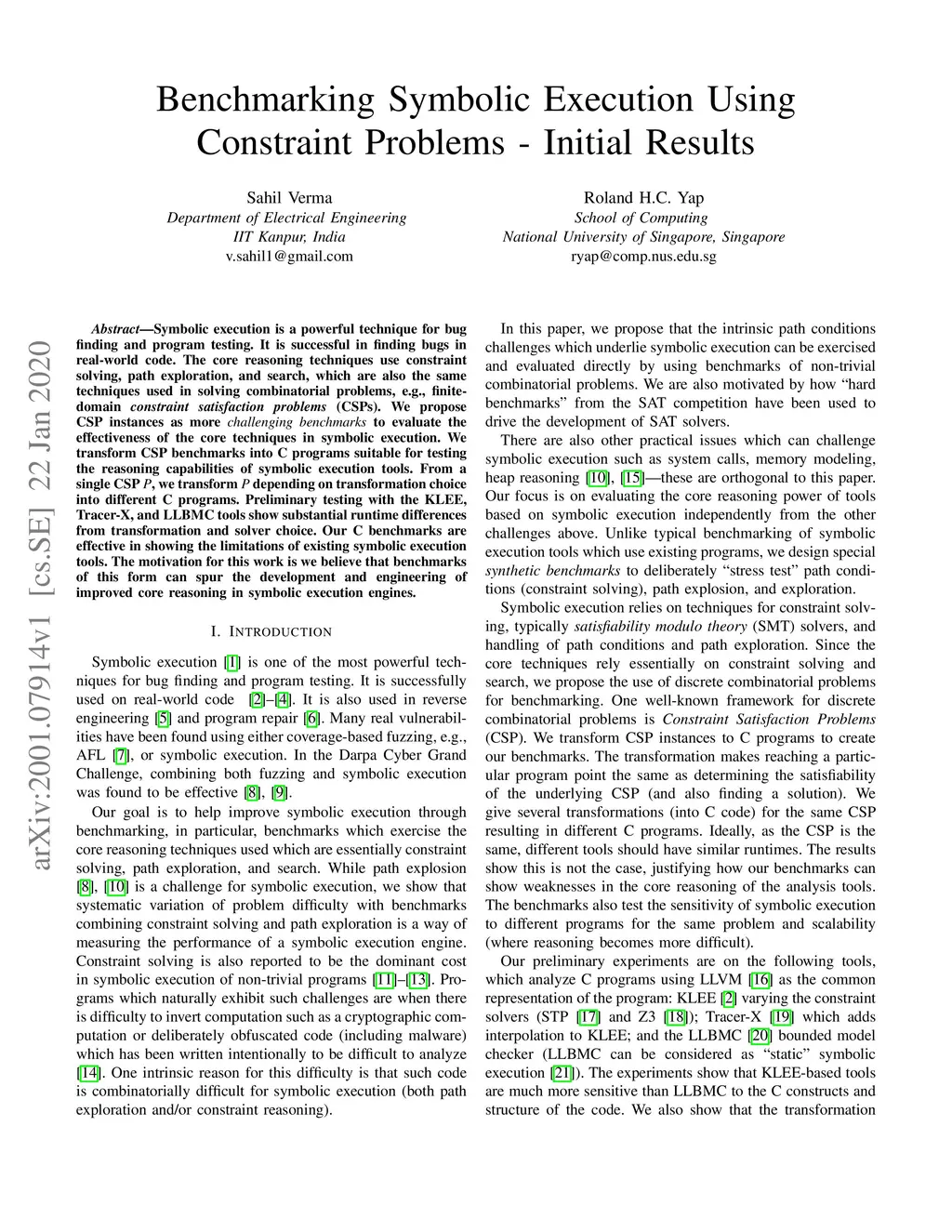 Benchmarking Symbolic Execution Using Constraint Problems -- Initial