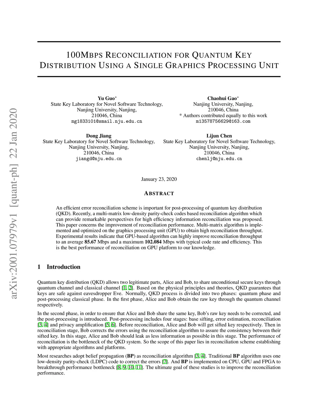 100Mbps Reconciliation for Quantum Key Distribution Using a Single