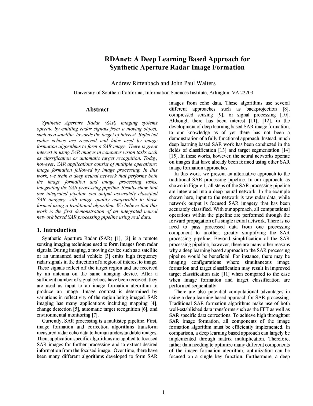 RDAnet: A Deep Learning Based Approach for Synthetic Aperture Radar
