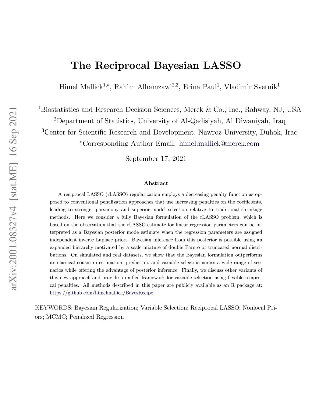 The Reciprocal Bayesian LASSO