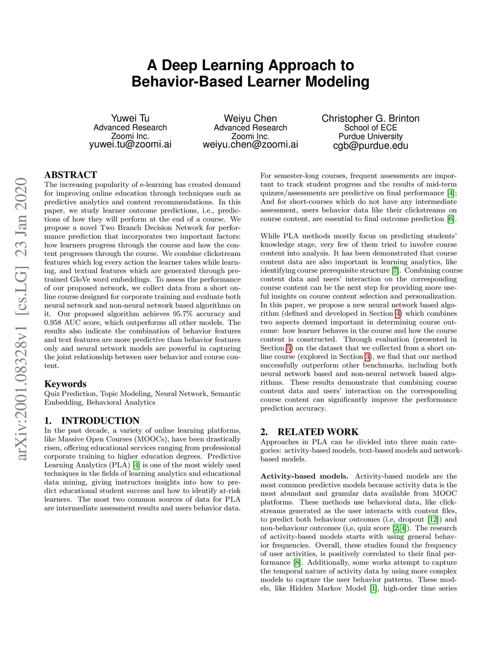 A Deep Learning Approach to Behavior-Based Learner Modeling