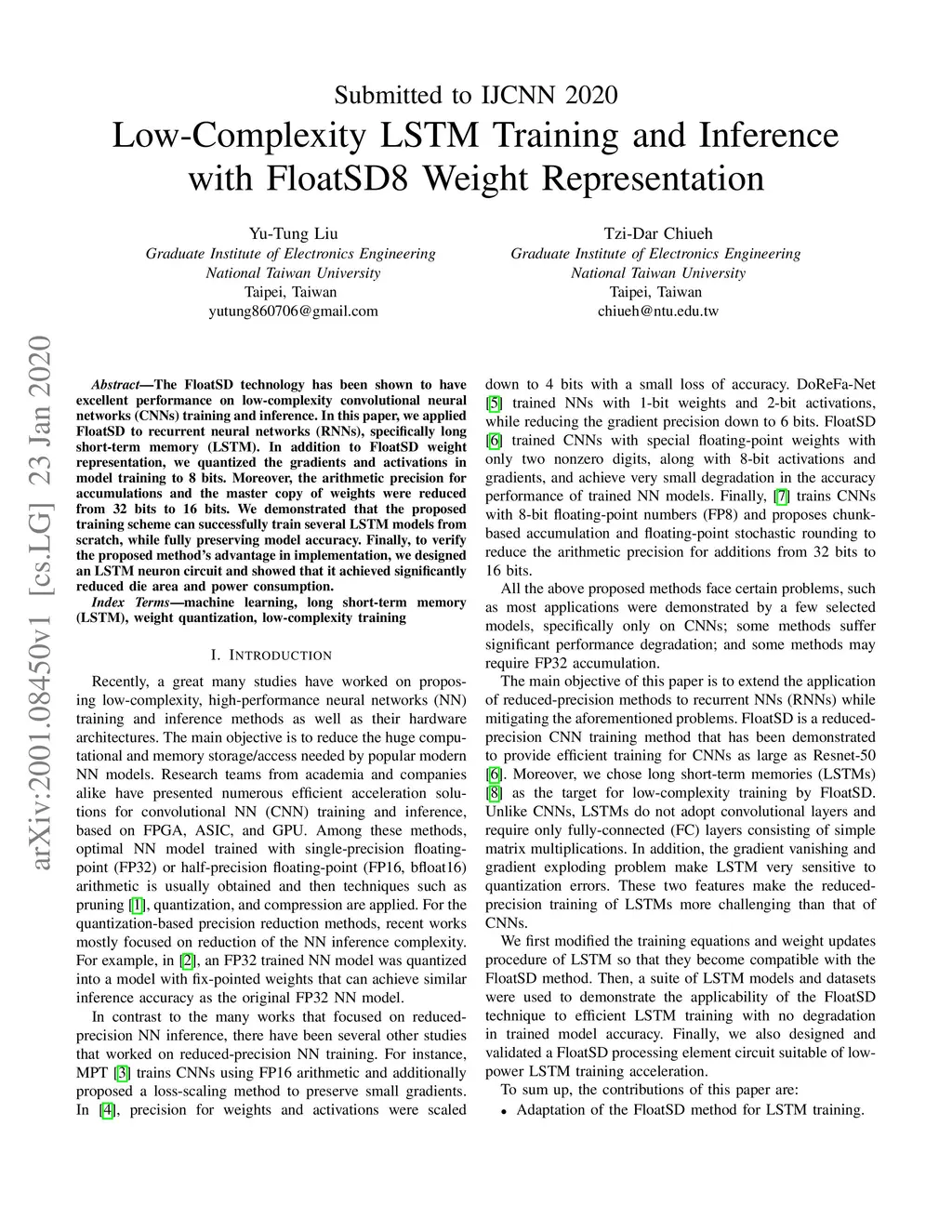 Low-Complexity LSTM Training and Inference with FloatSD8 Weight