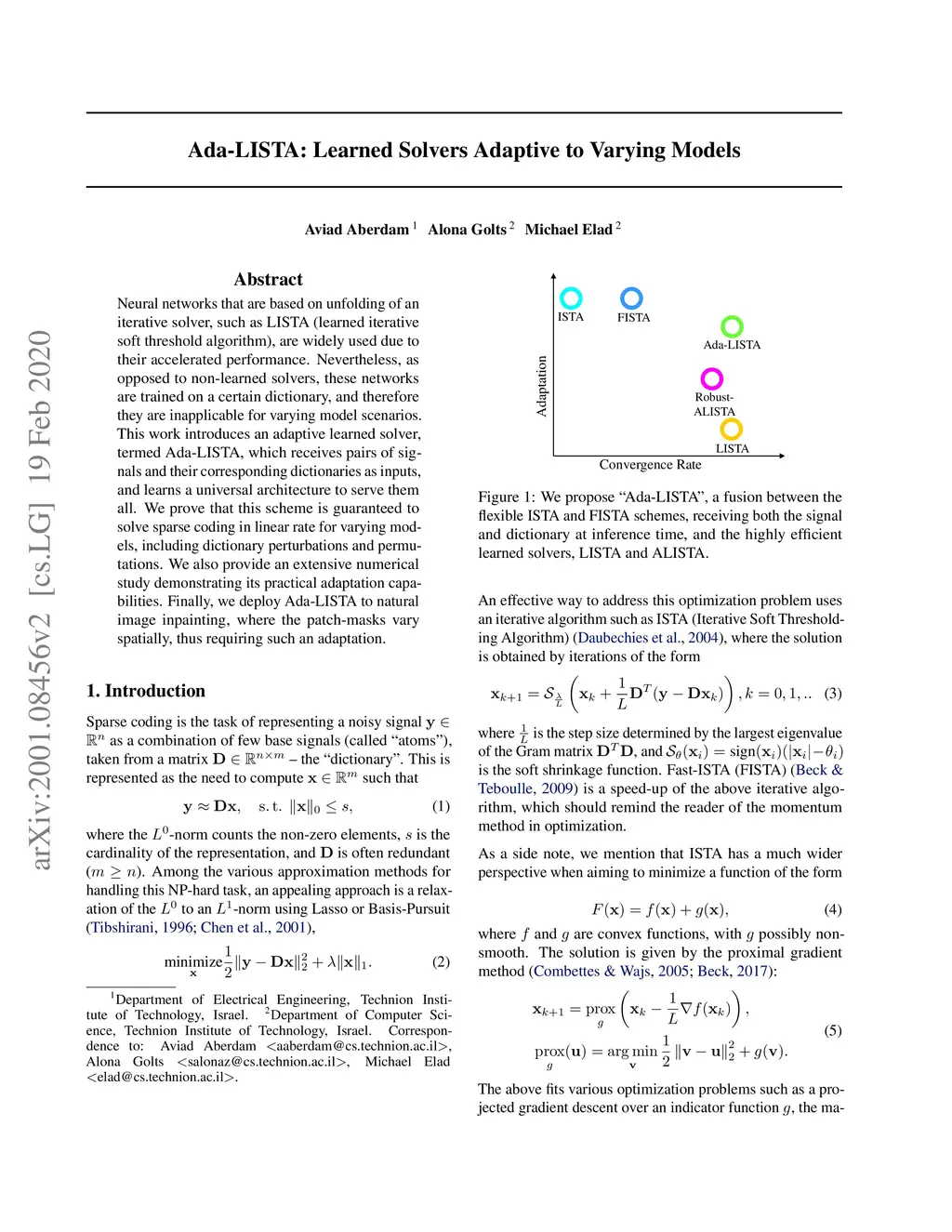 Neural networks that are based on unfolding of an iterative solver, such as LISTA (learned iterative soft threshold algorithm), are widely used due to their accelerated performance. Nevertheless, as opposed to non-learned solvers, these networks are trained on a certain dictionary, and therefore they are inapplicable for varying model scenarios. This work introduces an adaptive learned solver, termed Ada-LISTA, which receives pairs of signals and their corresponding dictionaries as inputs, and learns a universal architecture to serve them all. We prove that this scheme is guaranteed to solve sparse coding in linear rate for varying models, including dictionary perturbations and permutations. We also provide an extensive numerical study demonstrating its practical adaptation capabilities. Finally, we deploy Ada-LISTA to natural image inpainting, where the patch-masks vary spatially, thus requiring such an adaptation.