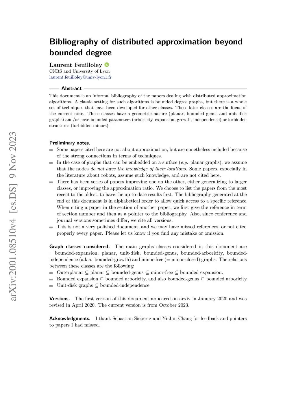 This document is an informal bibliography of the papers dealing with distributed approximation algorithms. A classic setting for such algorithms is bounded degree graphs, but there is a whole set of techniques that have been developed for other classes. These later classes are the focus of the current work. These classes have a geometric nature (planar, bounded genus and unit-disk graphs) and/or have bounded parameters (arboricity, expansion, growth, independence) or forbidden structures (forbidden minors).
