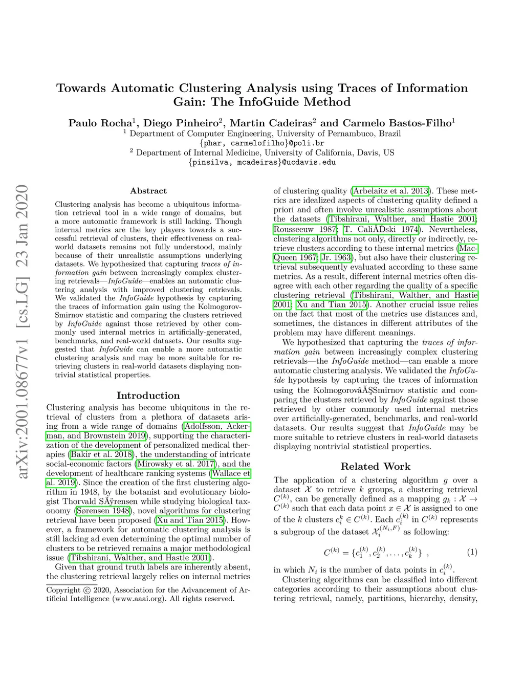 Clustering analysis has become a ubiquitous information retrieval tool in a wide range of domains, but a more automatic framework is still lacking. Though internal metrics are the key players towards a successful retrieval of clusters, their effectiveness on real-world datasets remains not fully understood, mainly because of their unrealistic assumptions underlying datasets. We hypothesized that capturing {\it traces of information gain} between increasingly complex clustering retrievals---{\it InfoGuide}---enables an automatic clustering analysis with improved clustering retrievals. We validated the {\it InfoGuide} hypothesis by capturing the traces of information gain using the Kolmogorov-Smirnov statistic and comparing the clusters retrieved by {\it InfoGuide} against those retrieved by other commonly used internal metrics in artificially-generated, benchmarks, and real-world datasets. Our results suggested that {\it InfoGuide} can enable a more automatic clustering analysis and may be more suitable for retrieving clusters in real-world datasets displaying nontrivial statistical properties.