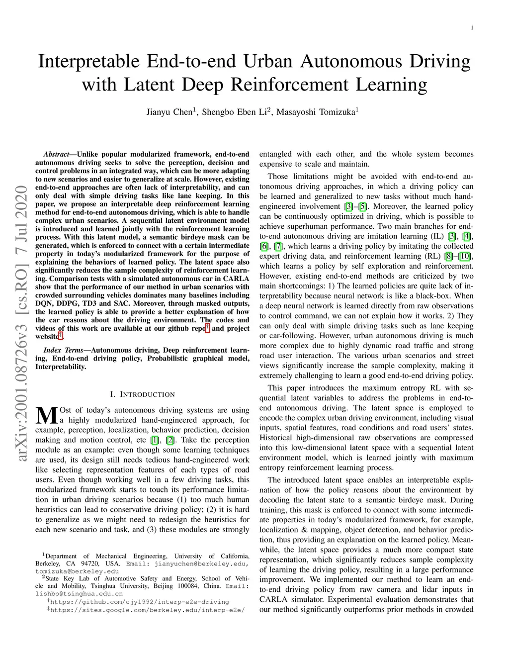 Interpretable End-to-end Urban Autonomous Driving with Latent Deep