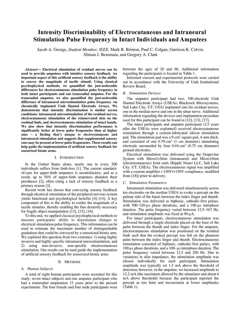 Stimulation Pulse Frequency in Intact Individuals and Amputees