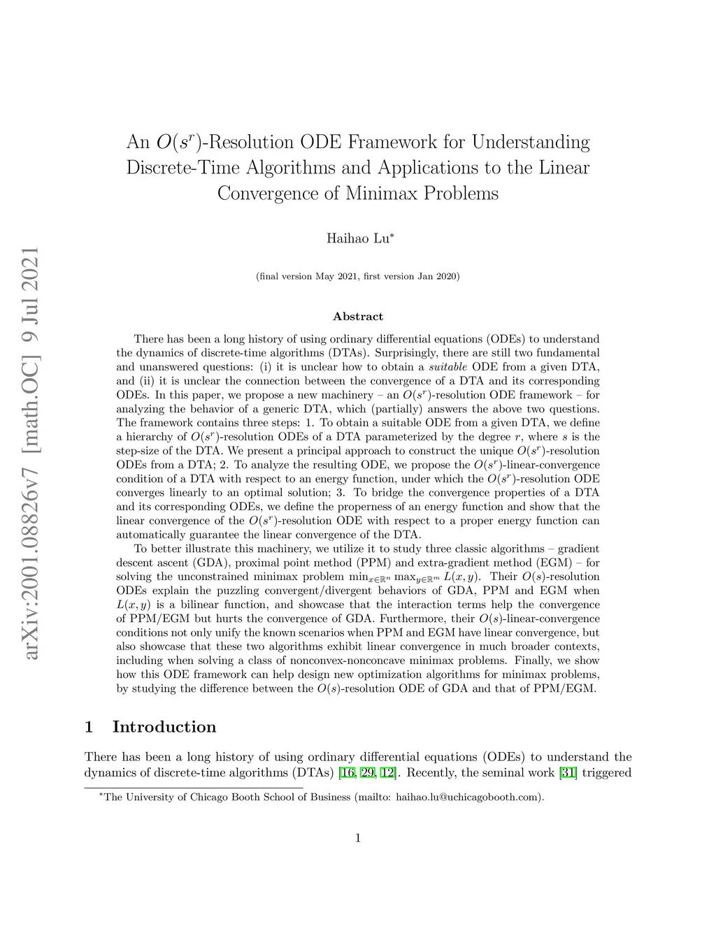 There has been a long history of using ordinary differential equations (ODEs) to understand the dynamics of discrete-time algorithms (DTAs). Surprisingly, there are still two fundamental and unanswered questions: (i) it is unclear how to obtain a \emph{suitable} ODE from a given DTA, and (ii) it is unclear the connection between the convergence of a DTA and its corresponding ODEs. In this paper, we propose a new machinery -- an -resolution ODE framework -- for analyzing the behavior of a generic DTA, which (partially) answers the above two questions. The framework contains three steps: 1. To obtain a suitable ODE from a given DTA, we define a hierarchy of -resolution ODEs of a DTA parameterized by the degree , where is the step-size of the DTA. We present a principal approach to construct the unique -resolution ODEs from a DTA; 2. To analyze the resulting ODE, we propose the -linear-convergence condition of a DTA with respect to an energy function, under which the -resolution ODE converges linearly to an optimal solution; 3. To bridge the convergence properties of a DTA and its corresponding ODEs, we define the properness of an energy function and show that the linear convergence of the -resolution ODE with respect to a proper energy function can automatically guarantee the linear convergence of the DTA. To better illustrate this machinery, we utilize it to study three classic algorithms -- gradient descent ascent (GDA), proximal point method (PPM) and extra-gradient method (EGM) -- for solving the unconstrained minimax problem .
