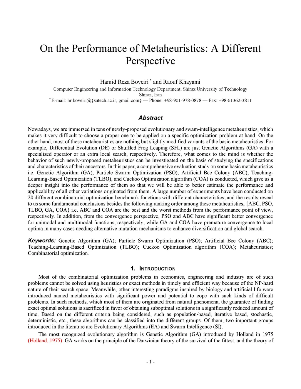 Nowadays, we are immersed in tens of newly-proposed evolutionary and swam-intelligence metaheuristics, which makes it very difficult to choose a proper one to be applied on a specific optimization problem at hand. On the other hand, most of these metaheuristics are nothing but slightly modified variants of the basic metaheuristics. For example, Differential Evolution (DE) or Shuffled Frog Leaping (SFL) are just Genetic Algorithms (GA) with a specialized operator or an extra local search, respectively. Therefore, what comes to the mind is whether the behavior of such newly-proposed metaheuristics can be investigated on the basis of studying the specifications and characteristics of their ancestors. In this paper, a comprehensive evaluation study on some basic metaheuristics i.e. Genetic Algorithm (GA), Particle Swarm Optimization (PSO), Artificial Bee Colony (ABC), Teaching-Learning-Based Optimization (TLBO), and Cuckoo Optimization algorithm (COA) is conducted, which give us a deeper insight into the performance of them so that we will be able to better estimate the performance and applicability of all other variations originated from them. A large number of experiments have been conducted on 20 different combinatorial optimization benchmark functions with different characteristics, and the results reveal to us some fundamental conclusions besides the following ranking order among these metaheuristics, {ABC, PSO, TLBO, GA, COA} i.e. ABC and COA are the best and the worst methods from the performance point of view, respectively. In addition, from the convergence perspective, PSO and ABC have significant better convergence for unimodal and multimodal functions, respectively, while GA and COA have premature convergence to local optima in many cases needing alternative mutation mechanisms to enhance diversification and global search.