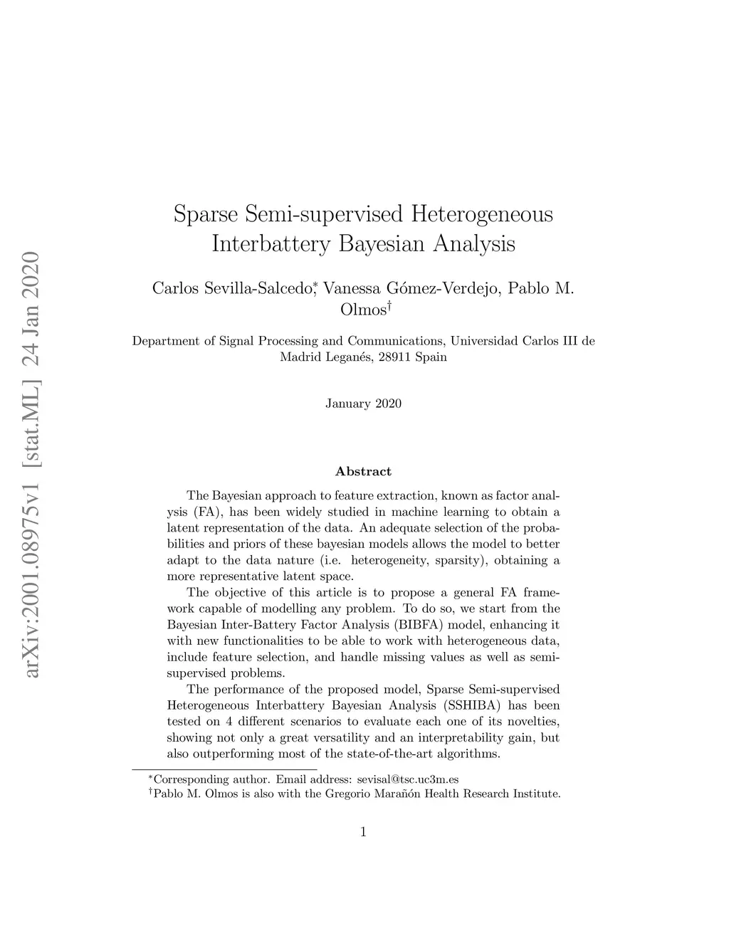 Sparse Semi-supervised Heterogeneous Interbattery Bayesian Analysis