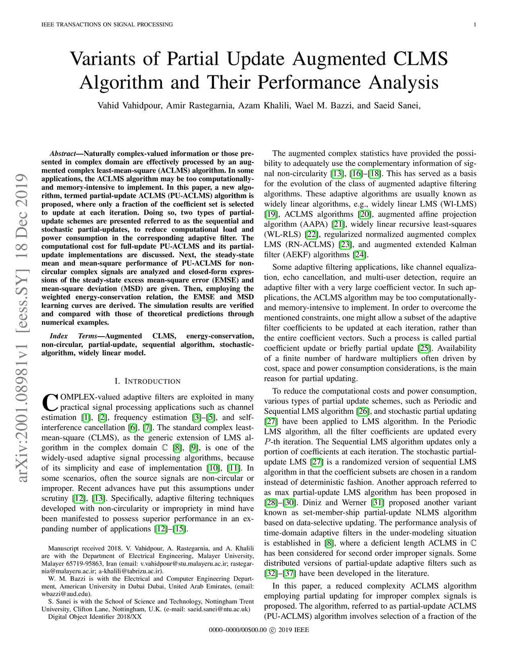 Variants of Partial Update Augmented CLMS Algorithm and Their