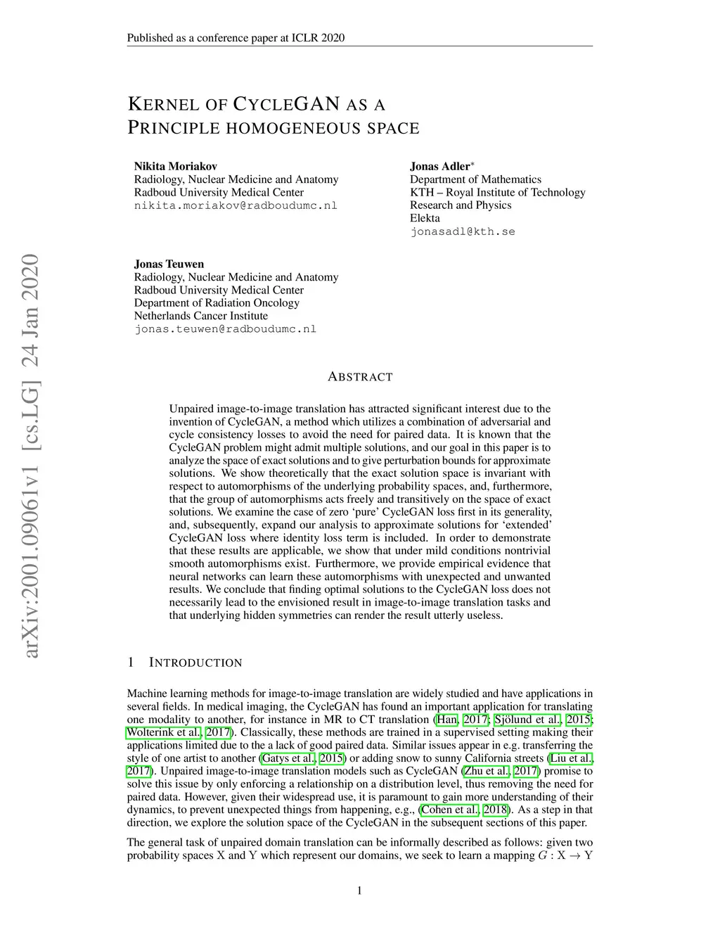 Unpaired image-to-image translation has attracted significant interest due to the invention of CycleGAN, a method which utilizes a combination of adversarial and cycle consistency losses to avoid the need for paired data. It is known that the CycleGAN problem might admit multiple solutions, and our goal in this paper is to analyze the space of exact solutions and to give perturbation bounds for approximate solutions. We show theoretically that the exact solution space is invariant with respect to automorphisms of the underlying probability spaces, and, furthermore, that the group of automorphisms acts freely and transitively on the space of exact solutions. We examine the case of zero `pure' CycleGAN loss first in its generality, and, subsequently, expand our analysis to approximate solutions for `extended' CycleGAN loss where identity loss term is included. In order to demonstrate that these results are applicable, we show that under mild conditions nontrivial smooth automorphisms exist. Furthermore, we provide empirical evidence that neural networks can learn these automorphisms with unexpected and unwanted results. We conclude that finding optimal solutions to the CycleGAN loss does not necessarily lead to the envisioned result in image-to-image translation tasks and that underlying hidden symmetries can render the result utterly useless.