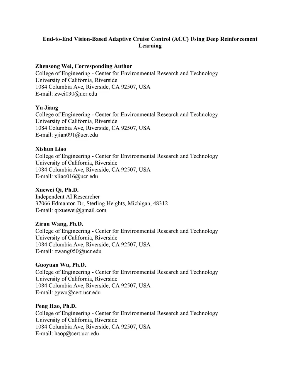 End-to-End Vision-Based Adaptive Cruise Control (ACC) Using Deep