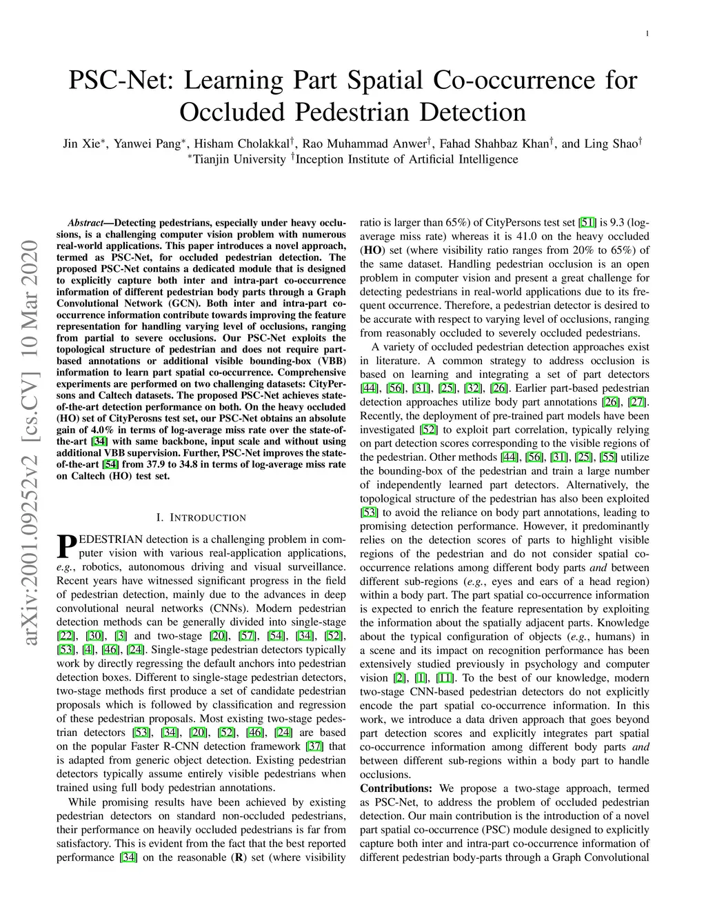 PSC-Net: Learning Part Spatial Co-occurrence for Occluded Pedestrian
