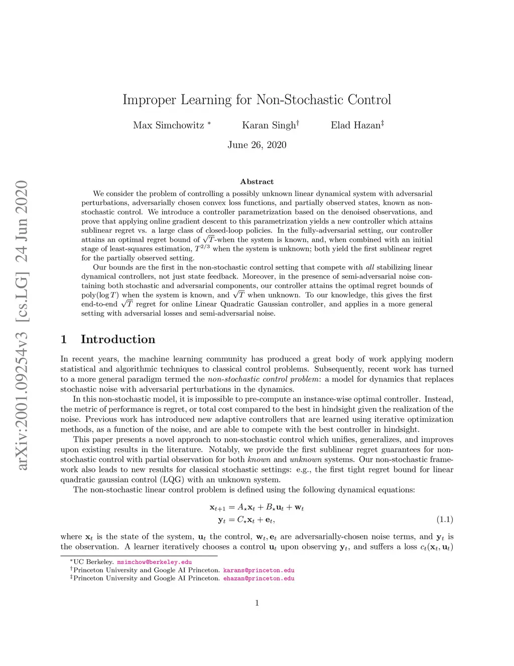 Improper Learning for Non-Stochastic Control