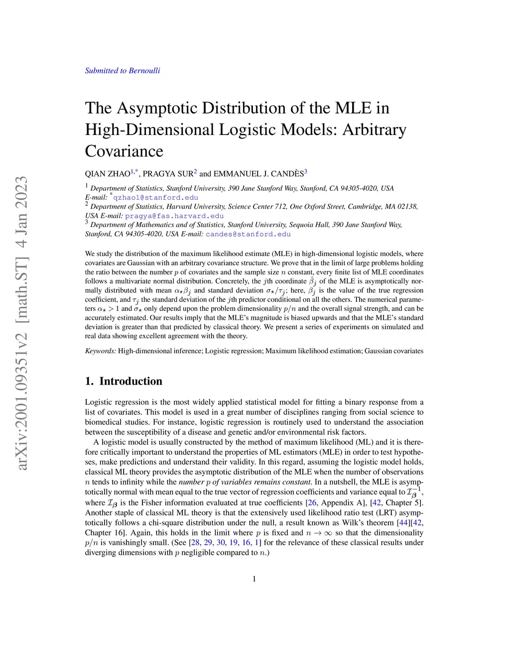The Asymptotic Distribution of the MLE in High-dimensional Logistic