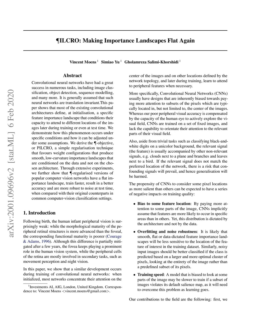 Convolutional neural networks have had a great success in numerous tasks, including image classification, object detection, sequence modelling, and many more. It is generally assumed that such neural networks are translation invariant, meaning that they can detect a given feature independent of its location in the input image. While this is true for simple cases, where networks are composed of a restricted number of layer classes and where images are fairly simple, complex images with common state-of-the-art networks do not usually enjoy this property as one might hope. This paper shows that most of the existing convolutional architectures define, at initialisation, a specific feature importance landscape that conditions their capacity to attend to different locations of the images later during training or even at test time. We demonstrate how this phenomenon occurs under specific conditions and how it can be adjusted under some assumptions. We derive the P-objective, or PILCRO for Pixel-wise Importance Landscape Curvature Regularised Objective, a simple regularisation technique that favours weight configurations that produce smooth, low-curvature importance landscapes that are conditioned on the data and not on the chosen architecture. Through extensive experiments, we further show that P-regularised versions of popular computer vision networks have a flat importance landscape, train faster, result in a better accuracy and are more robust to noise at test time, when compared to their original counterparts in common computer-vision classification settings.