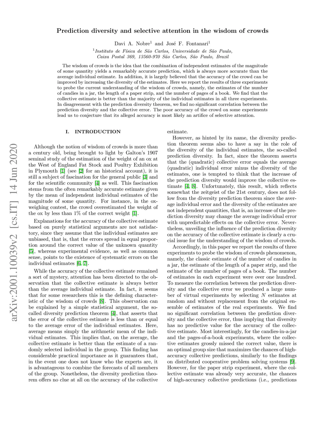 The wisdom of crowds is the idea that the combination of independent estimates of the magnitude of some quantity yields a remarkably accurate prediction, which is always more accurate than the average individual estimate. In addition, it is largely believed that the accuracy of the crowd can be improved by increasing the diversity of the estimates. Here we report the results of three experiments to probe the current understanding of the wisdom of crowds, namely, the estimates of the number of candies in a jar, the length of a paper strip, and the number of pages of a book. We find that the collective estimate is better than the majority of the individual estimates in all three experiments. In disagreement with the prediction diversity theorem, we find no significant correlation between the prediction diversity and the collective error. The poor accuracy of the crowd on some experiments lead us to conjecture that its alleged accuracy is most likely an artifice of selective attention.