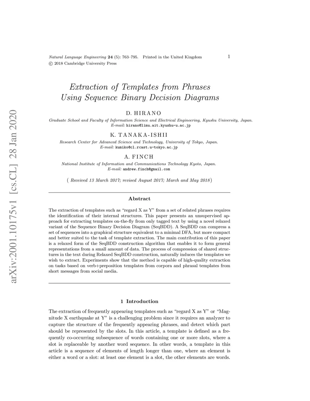 Extraction of Templates from Phrases Using Sequence Binary Decision
