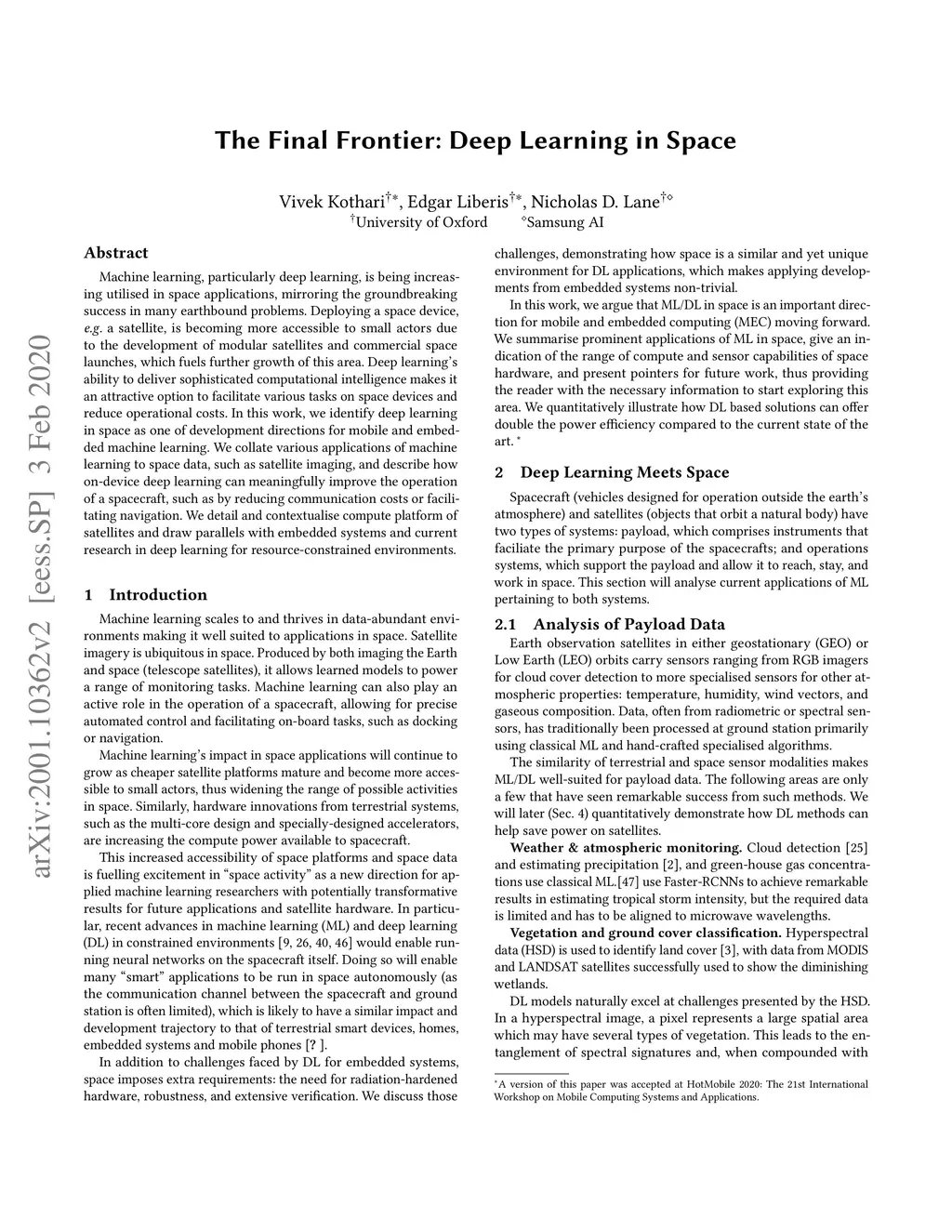 The Final Frontier: Deep Learning in Space