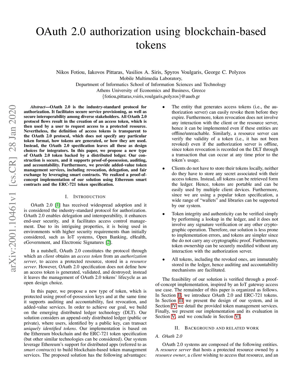 OAuth 2.0 is the industry-standard protocol for authorization. It facilitates secure service provisioning, as well as secure interoperability among diverse stakeholders. All OAuth 2.0 protocol flows result in the creation of an access token, which is then used by a user to request access to a protected resource. Nevertheless, the definition of access tokens is transparent to the OAuth 2.0 protocol, which does not specify any particular token format, how tokens are generated, or how they are used. Instead, the OAuth 2.0 specification leaves all these as design choices for integrators. In this paper, we propose a new type of OAuth 2.0 token backed by a distributed ledger. Our construction is secure, and it supports proof-of-possession, auditing, and accountability. Furthermore, we provide added-value token management services, including revocation, delegation, and fair exchange by leveraging smart contracts. We realized a proof-of-concept implementation of our solution using Ethereum smart contracts and the ERC-721 token specification.