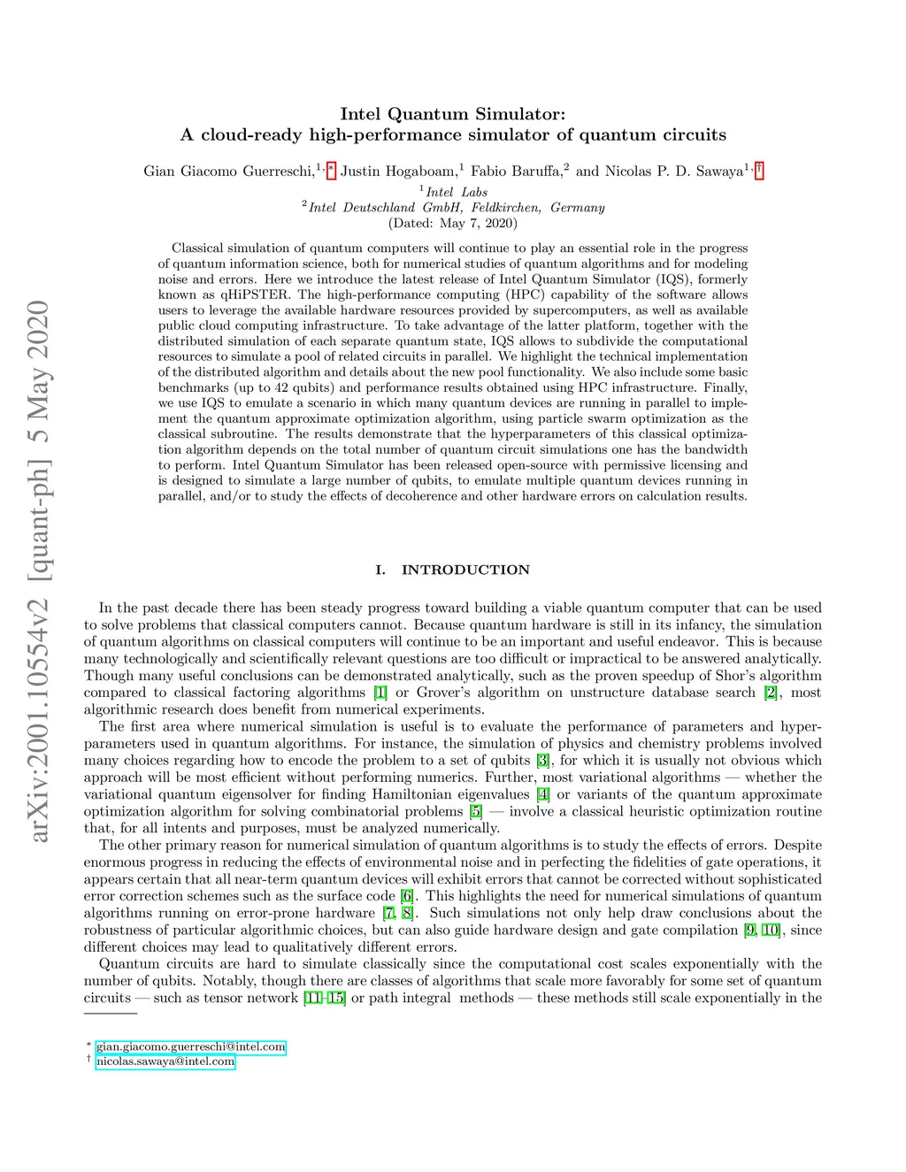 Intel Quantum Simulator: A cloud-ready high-performance simulator of