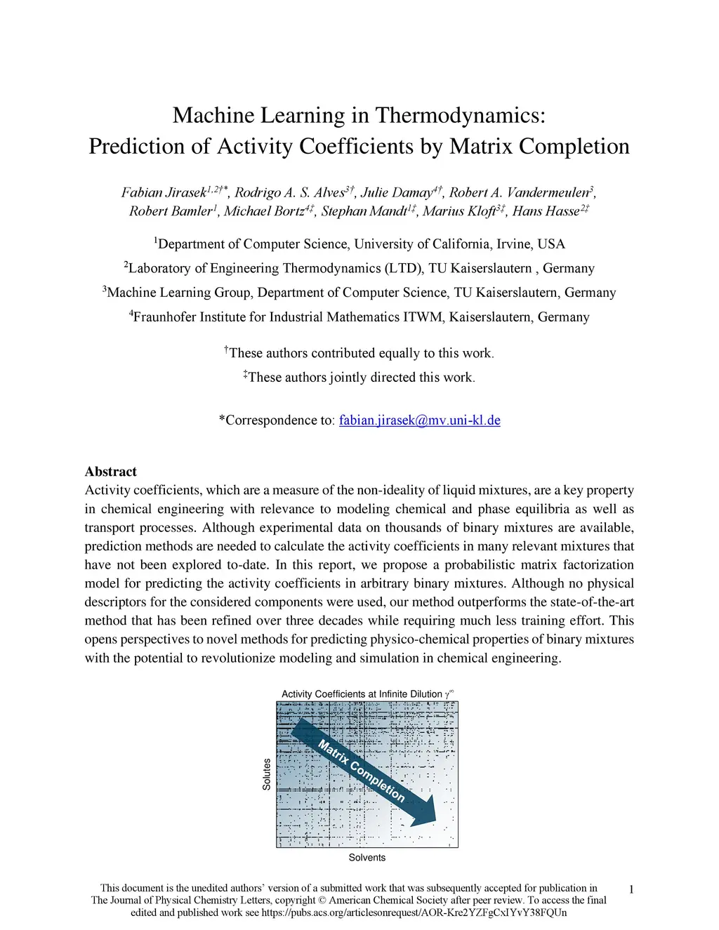 Machine Learning in Thermodynamics: Prediction of Activity Coefficients