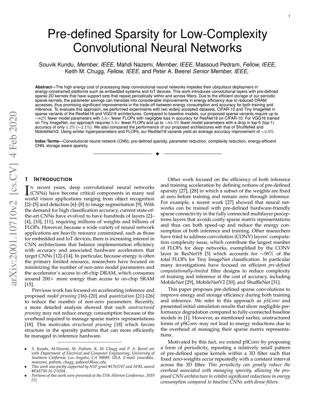 Pre-defined Sparsity for Low-Complexity Convolutional Neural Networks
