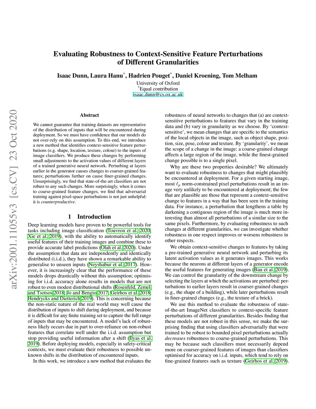 We cannot guarantee that training datasets are representative of the distribution of inputs that will be encountered during deployment. So we must have confidence that our models do not over-rely on this assumption. To this end, we introduce a new method that identifies context-sensitive feature perturbations (e.g. shape, location, texture, colour) to the inputs of image classifiers. We produce these changes by performing small adjustments to the activation values of different layers of a trained generative neural network. Perturbing at layers earlier in the generator causes changes to coarser-grained features; perturbations further on cause finer-grained changes. Unsurprisingly, we find that state-of-the-art classifiers are not robust to any such changes. More surprisingly, when it comes to coarse-grained feature changes, we find that adversarial training against pixel-space perturbations is not just unhelpful: it is counterproductive.