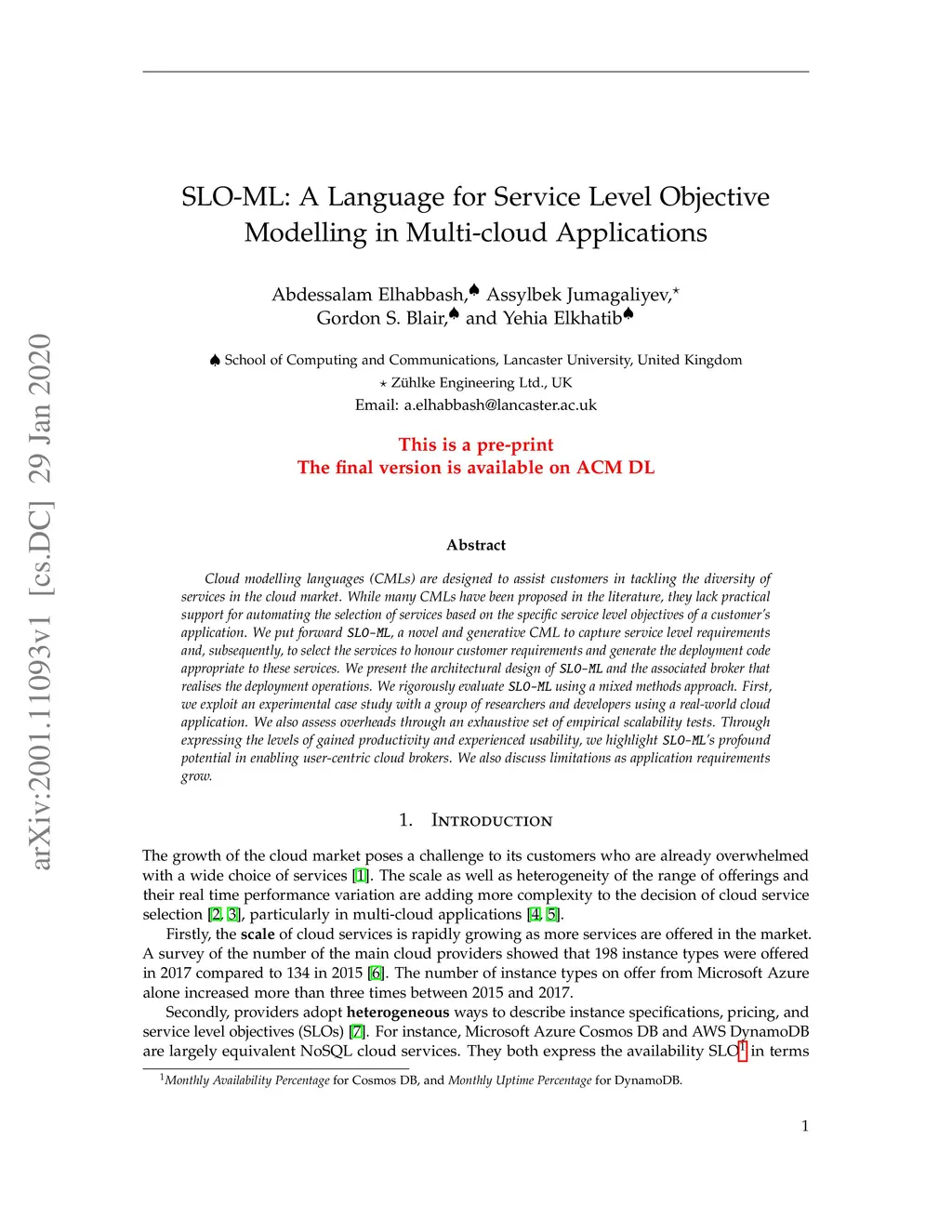 SLO-ML: A Language for Service Level Objective Modelling in Multi-cloud
