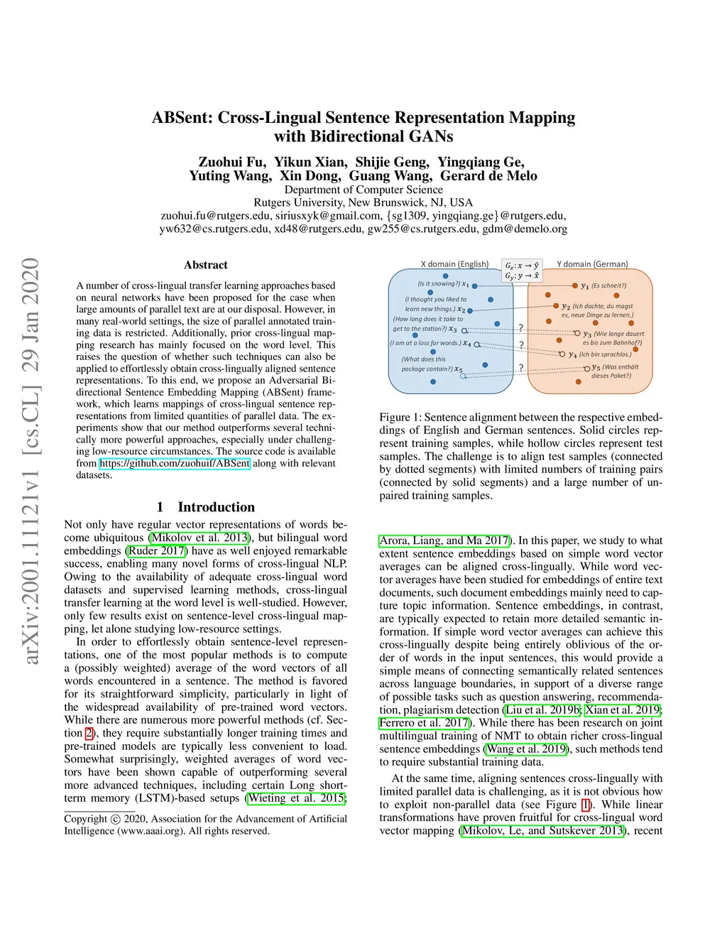 ABSent: Cross-Lingual Sentence Representation Mapping with Bidirectional