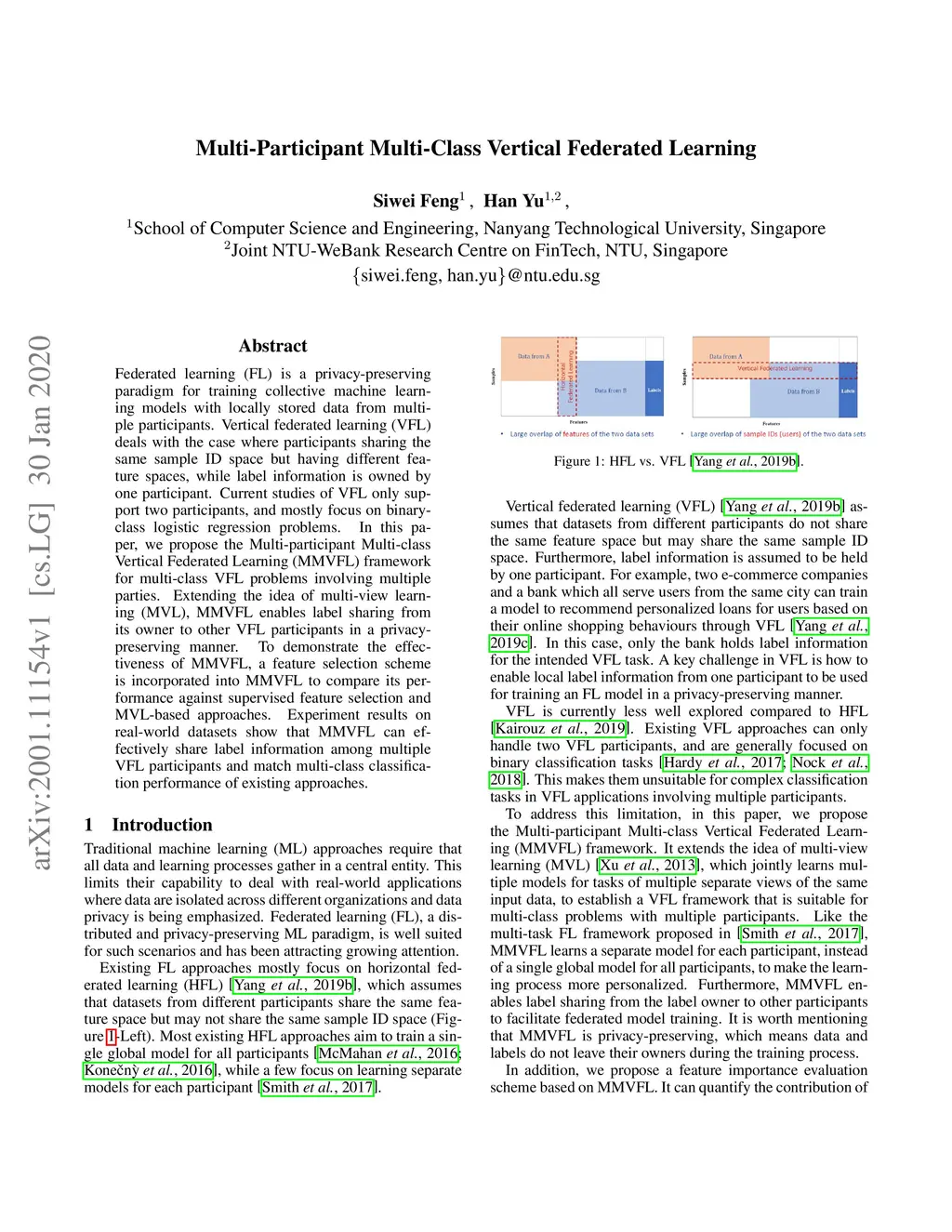 Multi-Participant Multi-Class Vertical Federated Learning