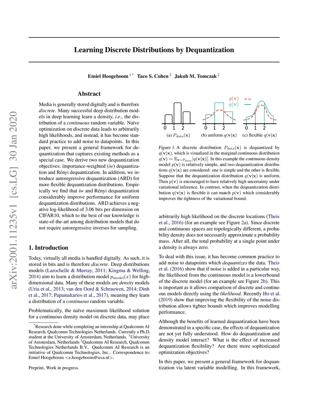 Learning Discrete Distributions by Dequantization