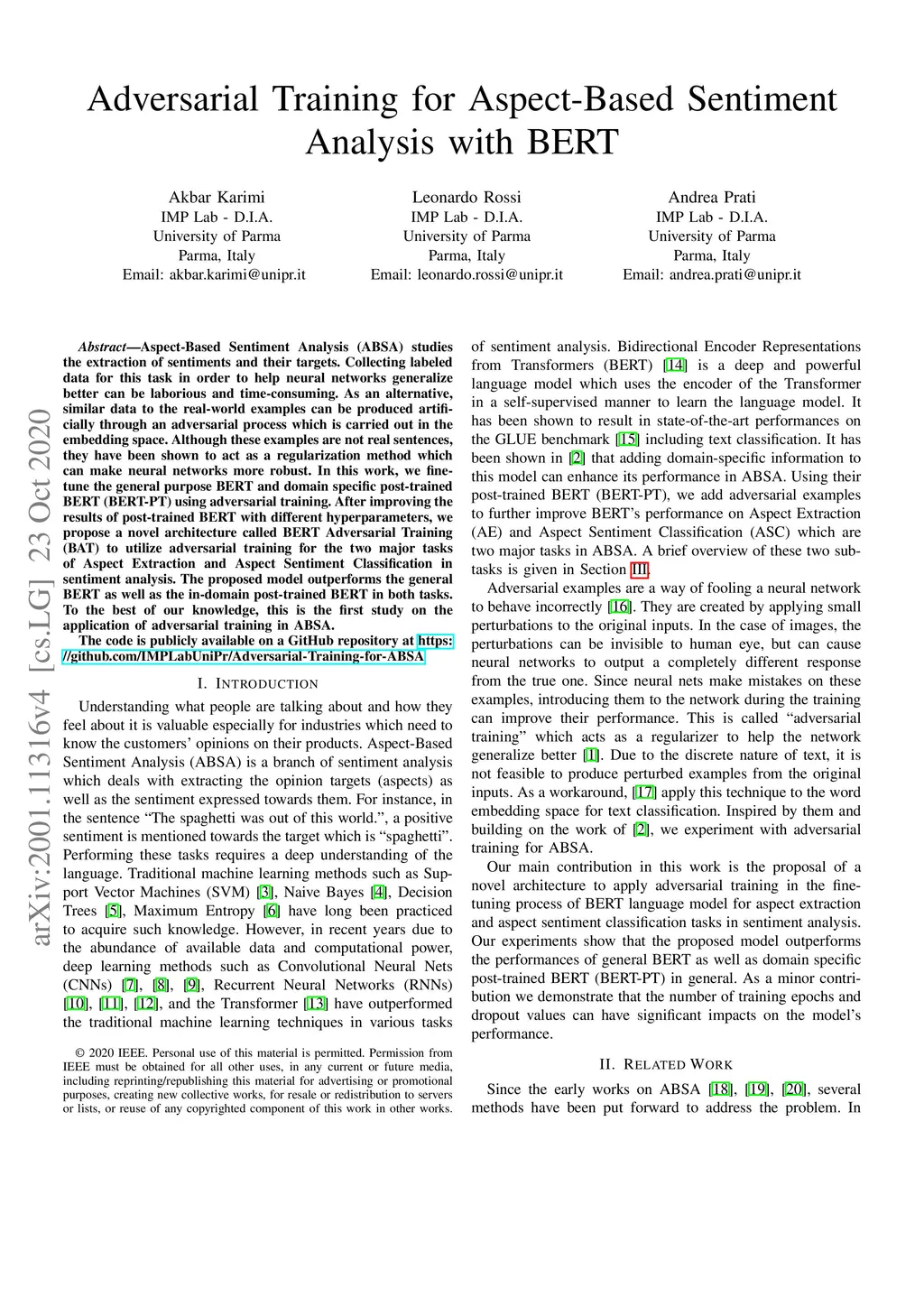 Adversarial Training for Aspect-Based Sentiment Analysis with BERT