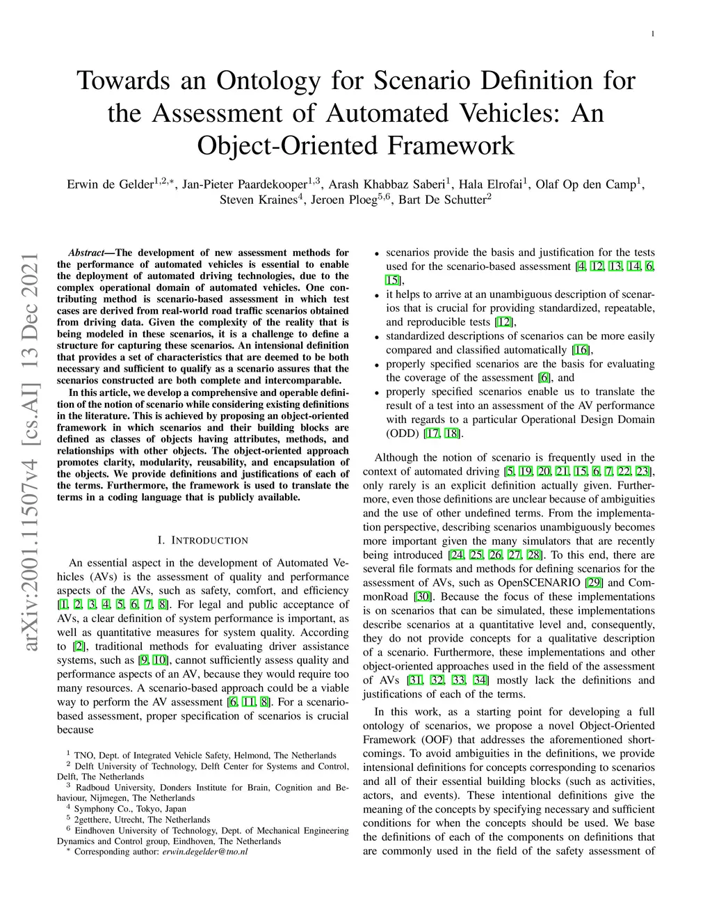 Automated Vehicles: An Object-Oriented Framework