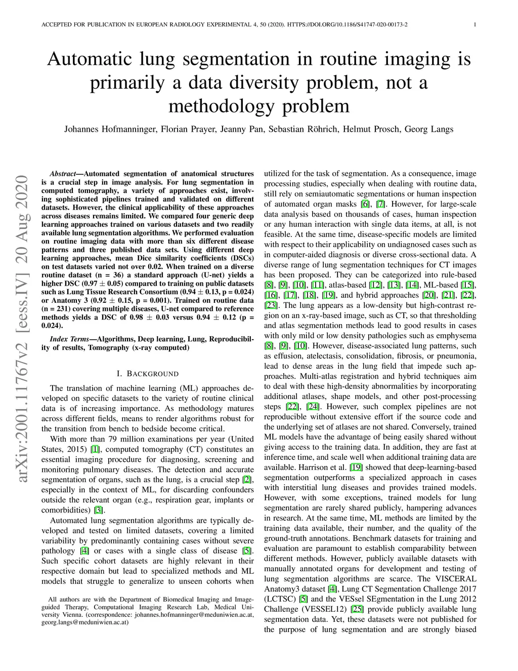 Automatic lung segmentation in routine imaging is primarily a data