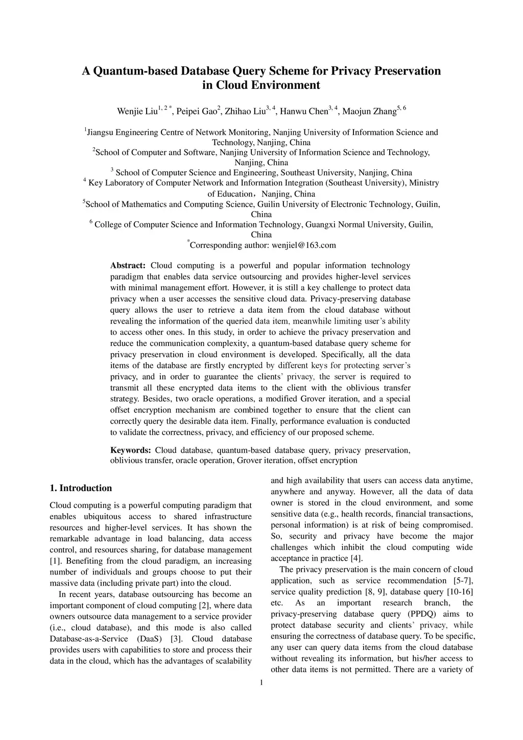 A Quantum-based Database Query Scheme for Privacy Preservation in Cloud
