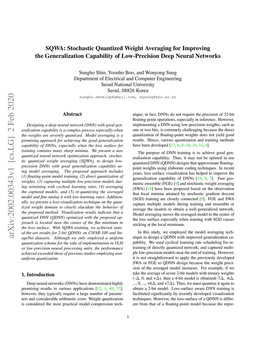 SQWA: Stochastic Quantized Weight Averaging for Improving the