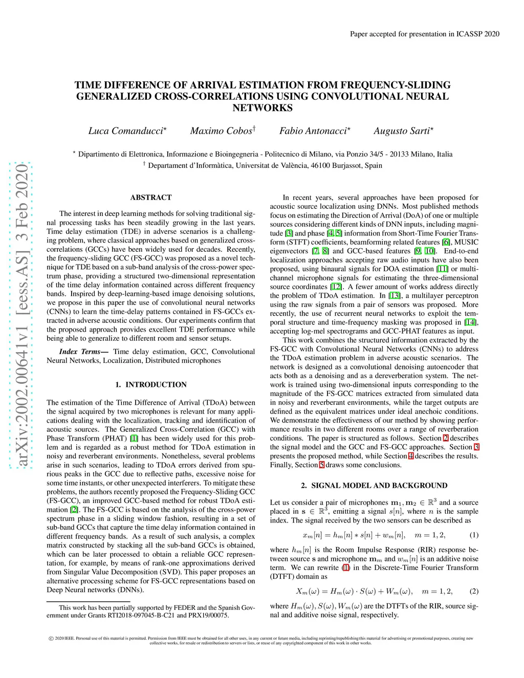 Time Difference of Arrival Estimation from Frequency-Sliding Generalized