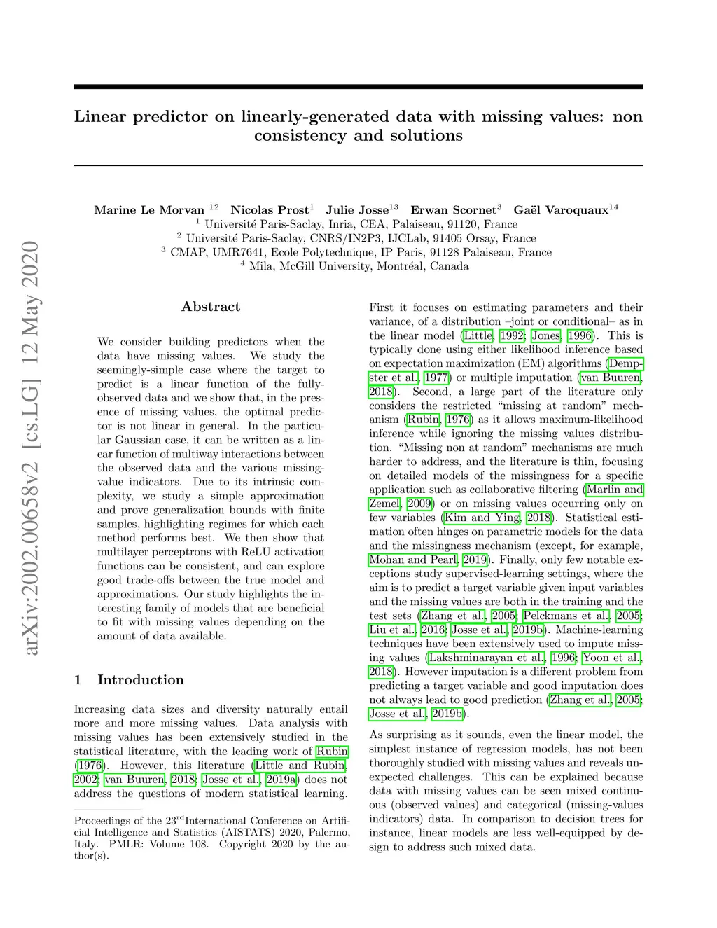 Linear predictor on linearly-generated data with missing values: non
