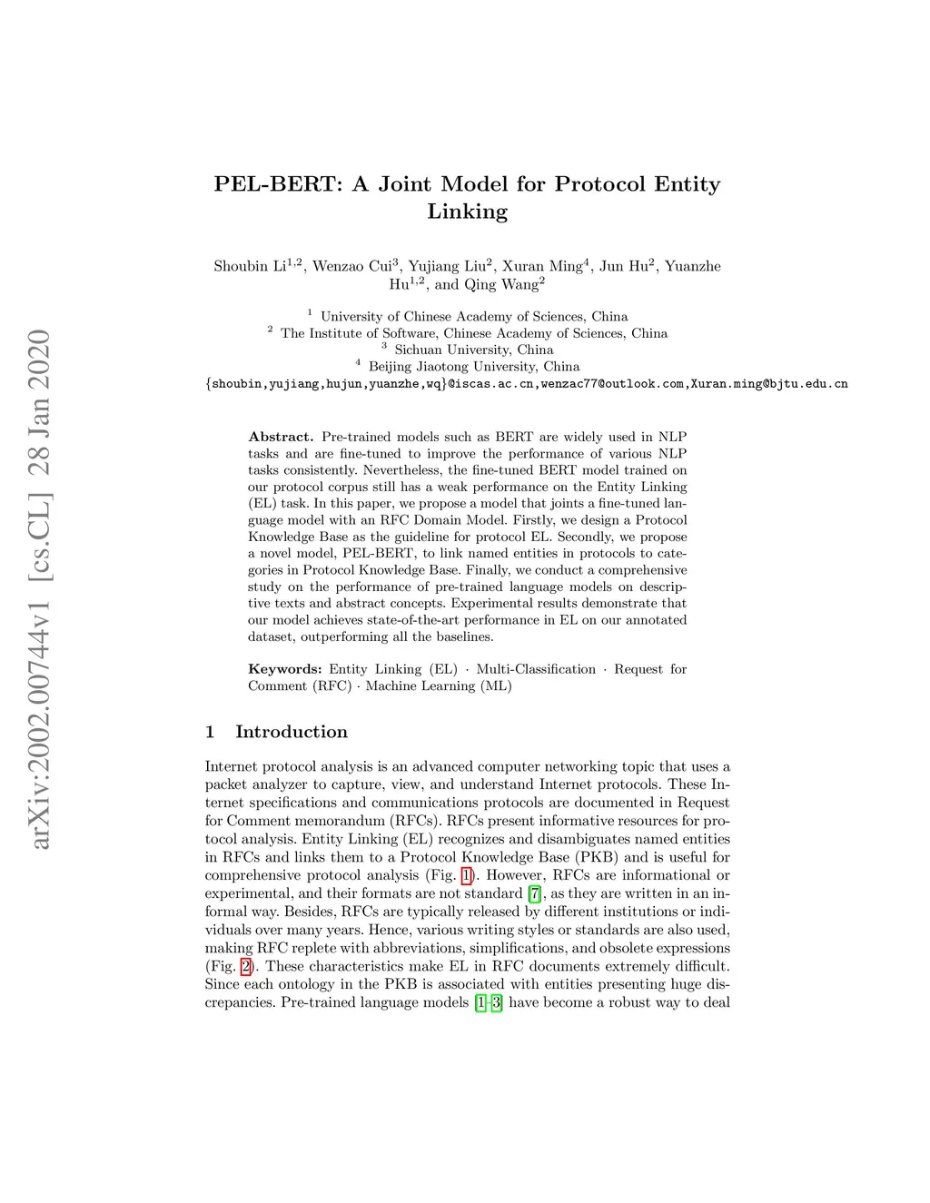 PEL-BERT: A Joint Model for Protocol Entity Linking