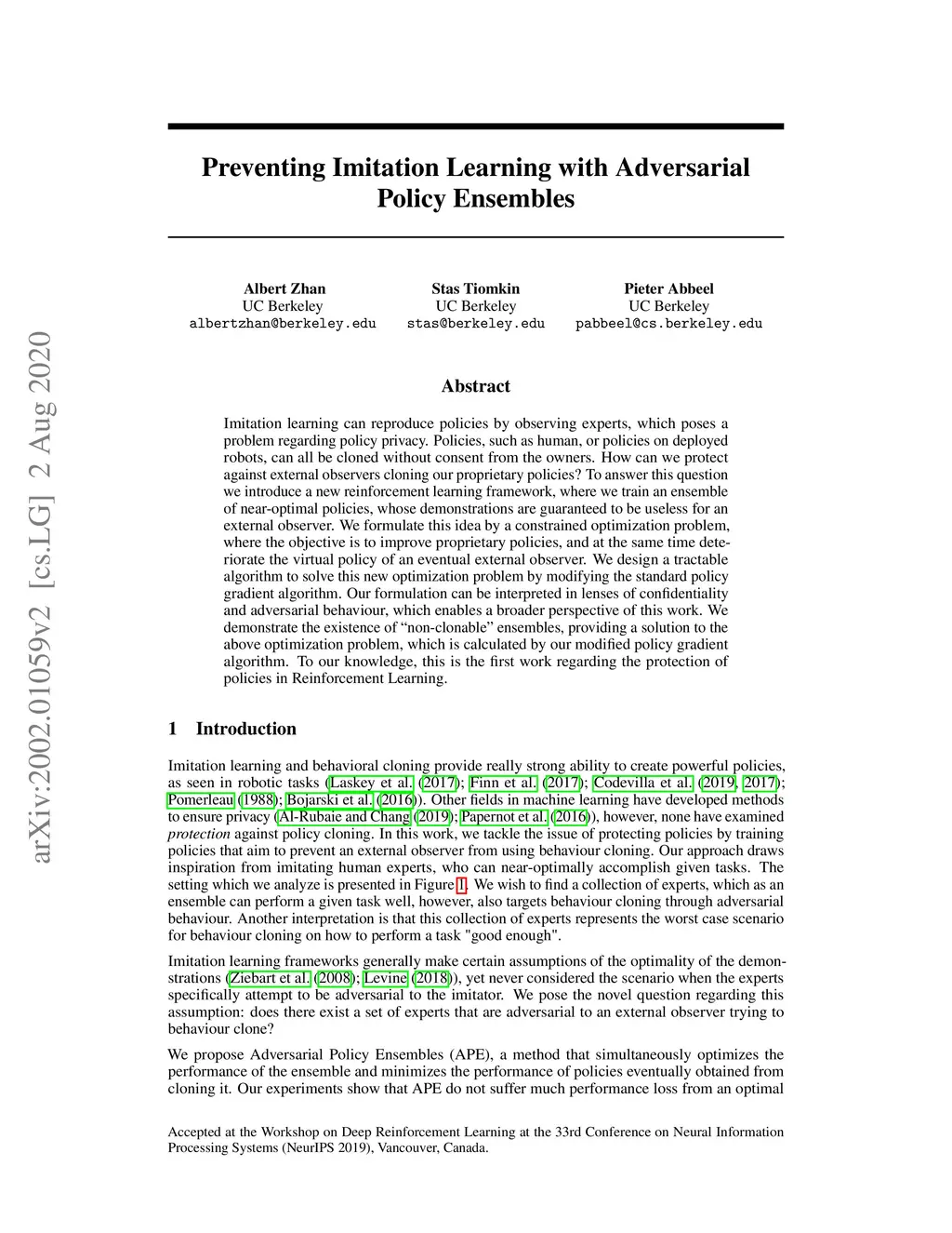 Preventing Imitation Learning with Adversarial Policy Ensembles